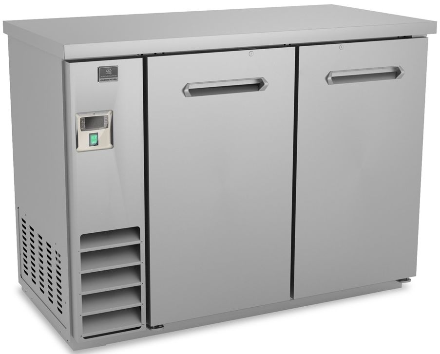 Back bar refrigerator. Exterior back and bottom panel in galvanized steel, top panel in 304 stainless steel and exterior panel and doors in 430 stainless steel; interior back and top panels in 430 stainless steel, interior bottom panel and worktop in 304 stainless steel.Read More