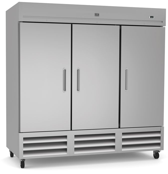 3 full doors freezer with exterior back and bottom panels in galvanized steel, exterior side and top panels in 430 stainless steel; interior back, side, top and bottom panels in 304 stainless steel. Control with cabinet temperature display. Self-closing and on-sitereversible door feature lock and key.Read More